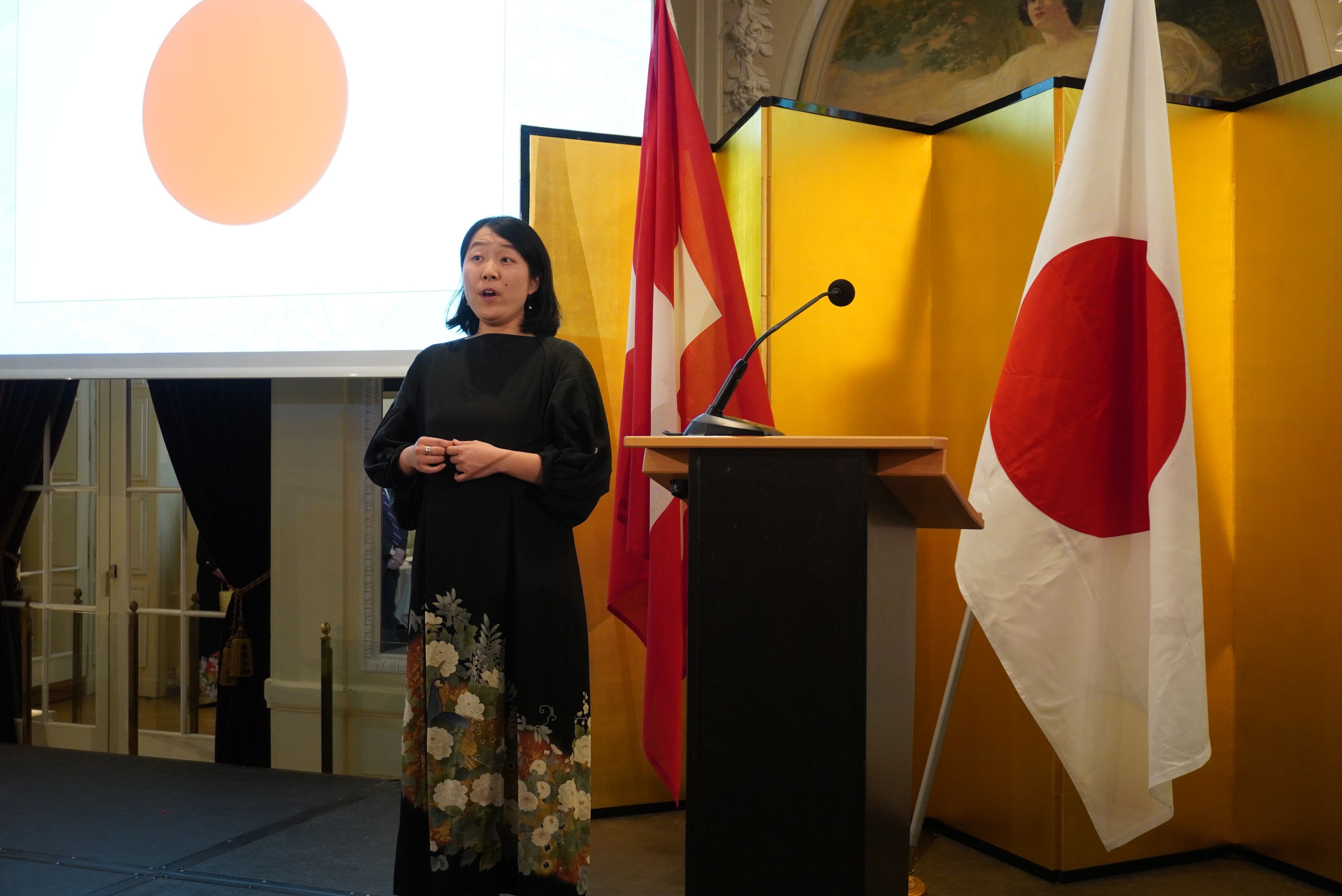 Die Zeremonie wurde mit einem Sopransolo von Frau INOUE Kaho eröffnet, die die Nationalhymnen beider Länder vortrug, gefolgt von einer Ansprache von Botschafter Iijima.
