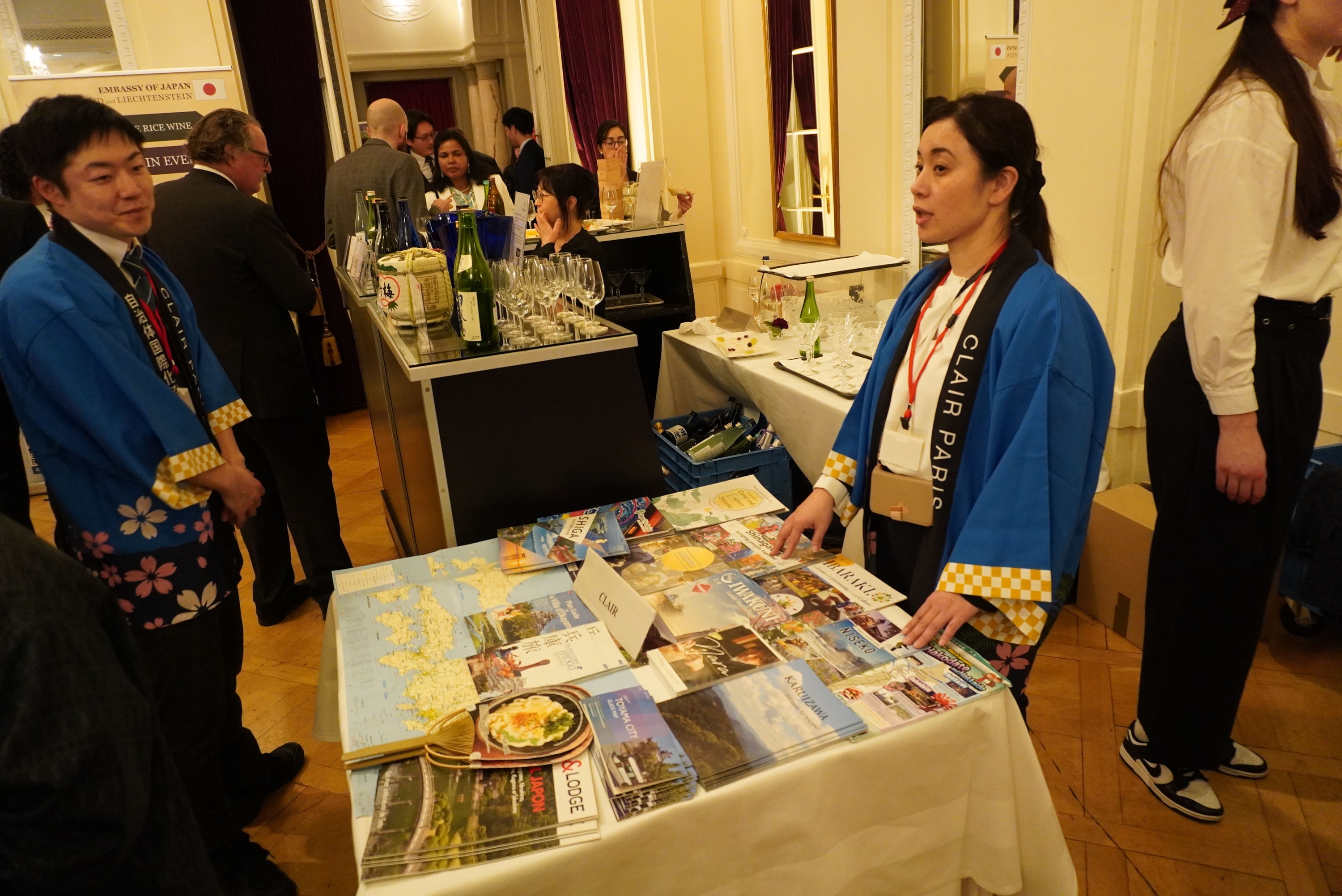 Darüber hinaus hatten nebst dem Japan Information and Cultural Center (JICC) der Japanischen Botschaft auch die Japan National Tourism Organization (JNTO), sowie das Pariser Büro des Council of Local Authorities for International Relations (CLAIR) Stände, an denen die japanische Kultur und Reisemöglichkeiten in Japan vorgestellt wurden. CLAIR hat freundlicherweise auch japanischen Sake zur Verfügung gestellt.