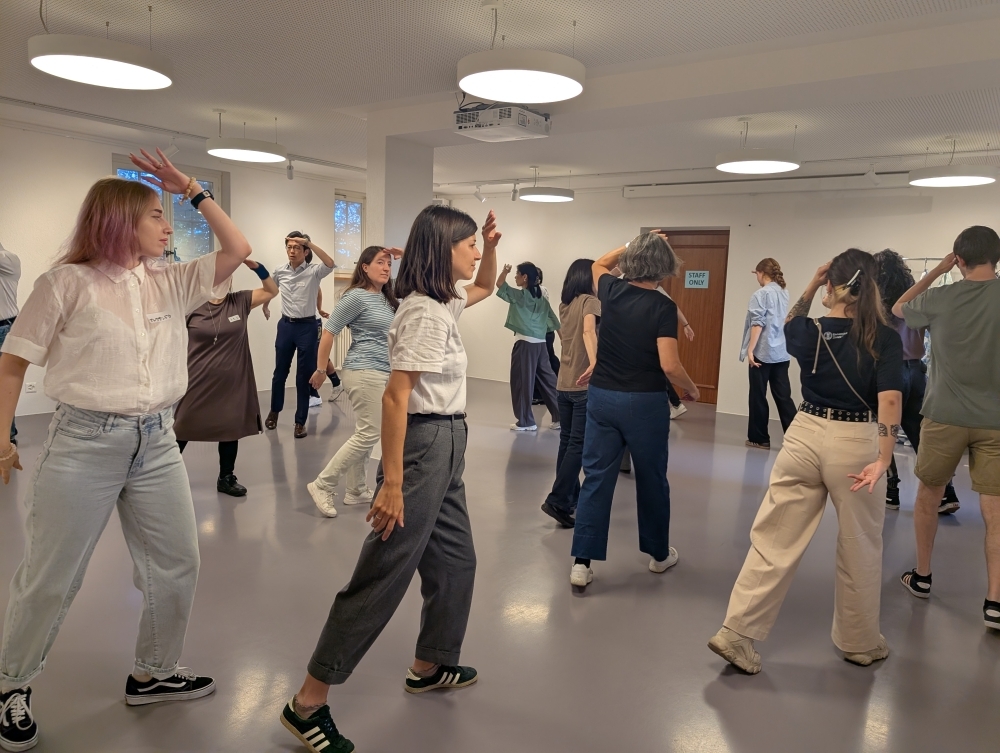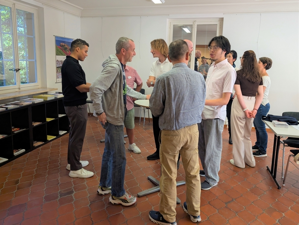 日本語を話す会を開催しました。 令和7年9月3日 日本語を話す会の様子1 日本語を話す会の様子2 9月3日(水)、当館広報文化センターにおいて「日本語を話す会」を開催しました。 この日は、今週末ベルン歴史博物館で開催される日本祭りにおいて当館が実施する文化行事の一つ「盆踊り」のため、参加者の皆さんと盆踊りの練習も行いました。 次回は、9月17日(水)に開催する予定です。詳しい情報は、こちらのページをご覧ください。