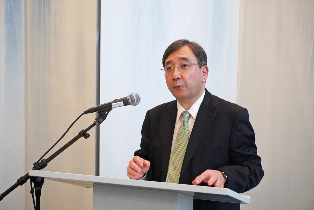 岩永チューリッヒ日本商工会会長による挨拶に続き、飯島大使による挨拶、萩野在ジュネーブ領事事務所長による乾杯挨拶の後、参加各社による企業紹介が行われ、最後に田中ジュネーブ日本倶楽部商工部会長による中締め挨拶がありました。